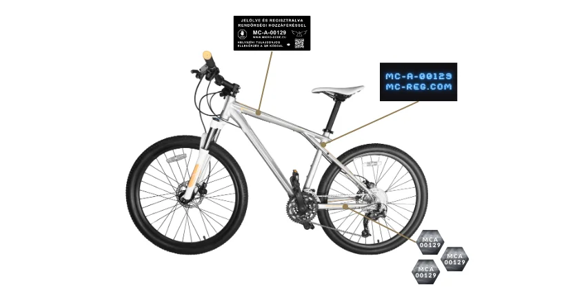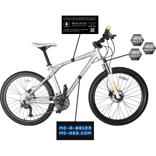 A BikeCode termékkel 3 féle járművédelmi jelölést alkalmazunk. Mikropont jelölést, UV fényben látható maratásos váz jelölést, és destruktív matrica jelölést.