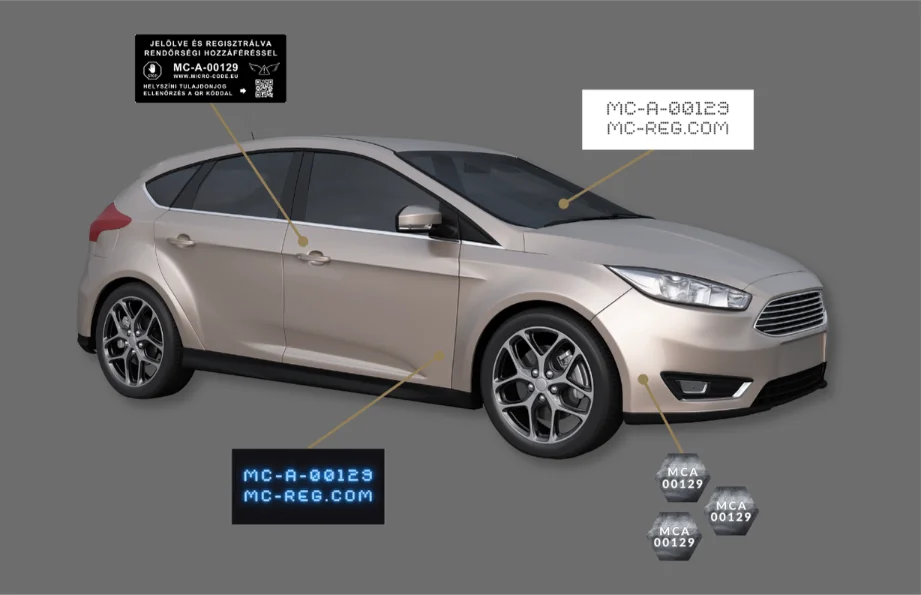 A MICRO-CODE biztonságtechnikai rendszer rejtett azonosító jelölésekkel látja el a járműveket, melyek lehetővé teszik a rendőrség számára, hogy azonosítsák a járműveket, – jelölt alkatrészek esetében is.