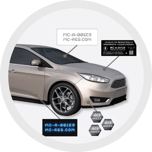 A mikropontok homokszem méretű fémlemezek, melyek tartalmazzák az egyedi azonosító kódot. A maratásos jelölések kémiai maratásos technológiák. A destruktív matrica eltávolításával a fényezés is sérül.